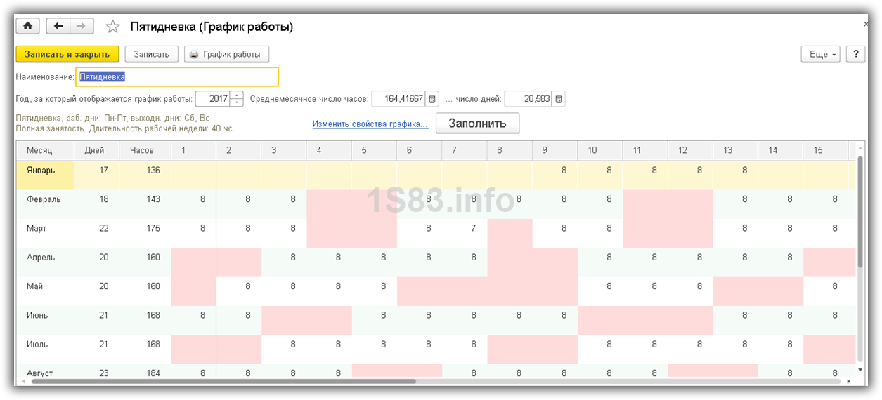 Для Учета рабочего времени утанавливается график работы